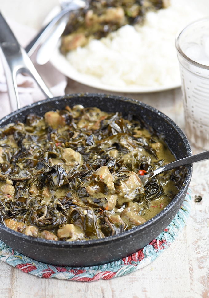 Ilan sa mga pinagmamalaking putahe ng mga Bikolano ay ang Bikol Express ito ay nilaga sa mahabang oras sa gatas ng niyog, sibuyas, bawang, shrimp paste at ano mang karne ang naisin.